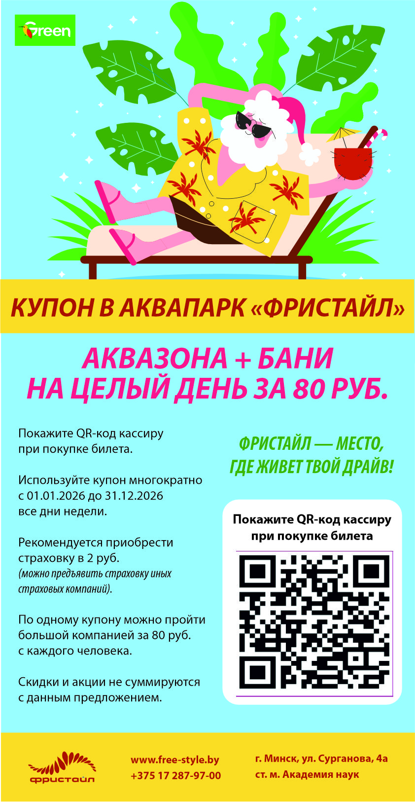 Купон в аквапарк «Фристайл» с выгодным предложением.