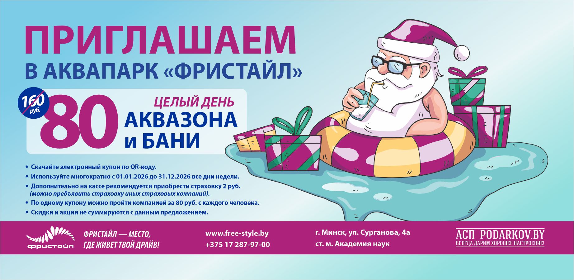 Ищите листовки-приглашения в аквапарк в ваших новогодних сладких подарках от Podarkov.by. Не упустите шанс насладиться водными аттракционами по выгодной цене!