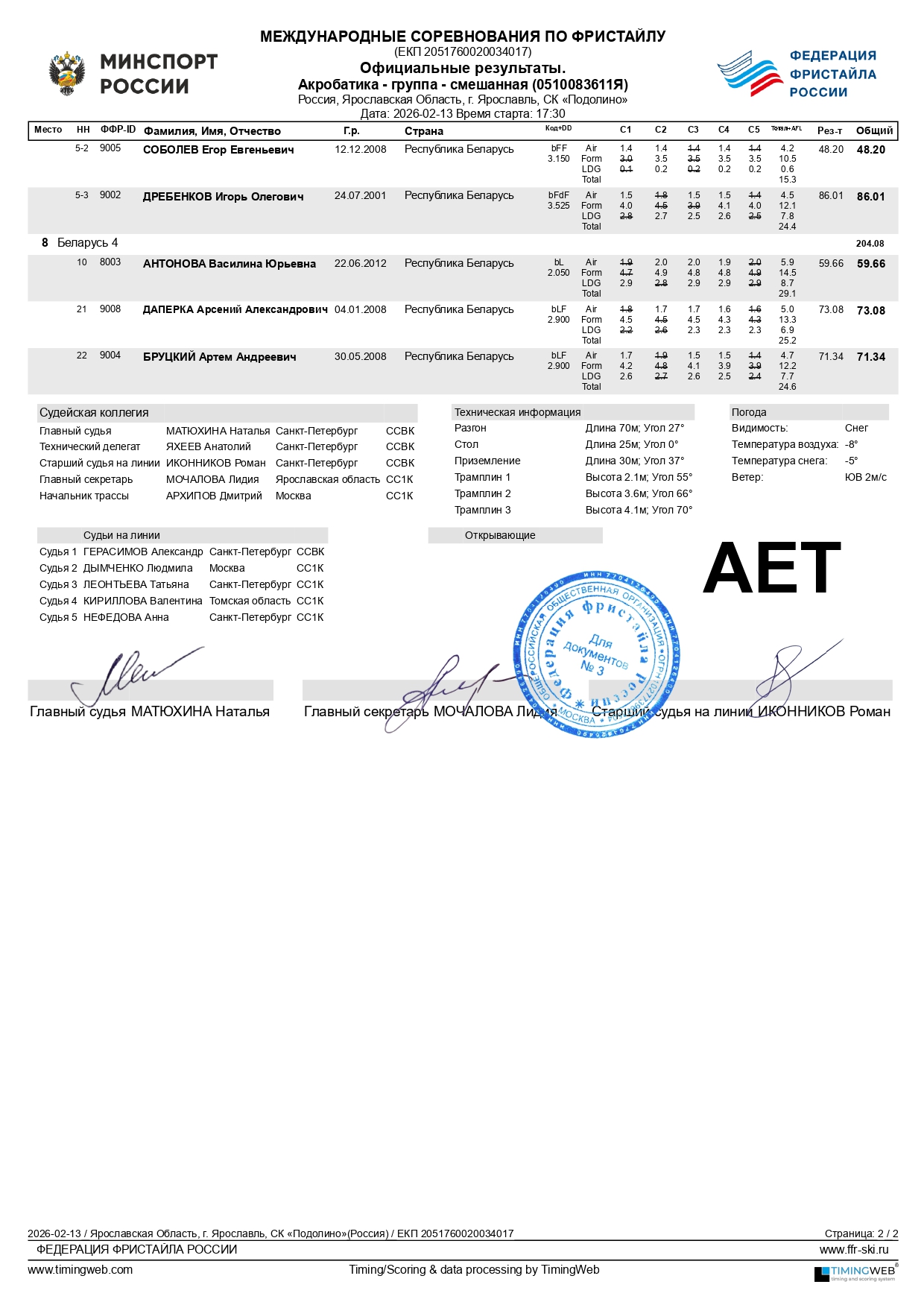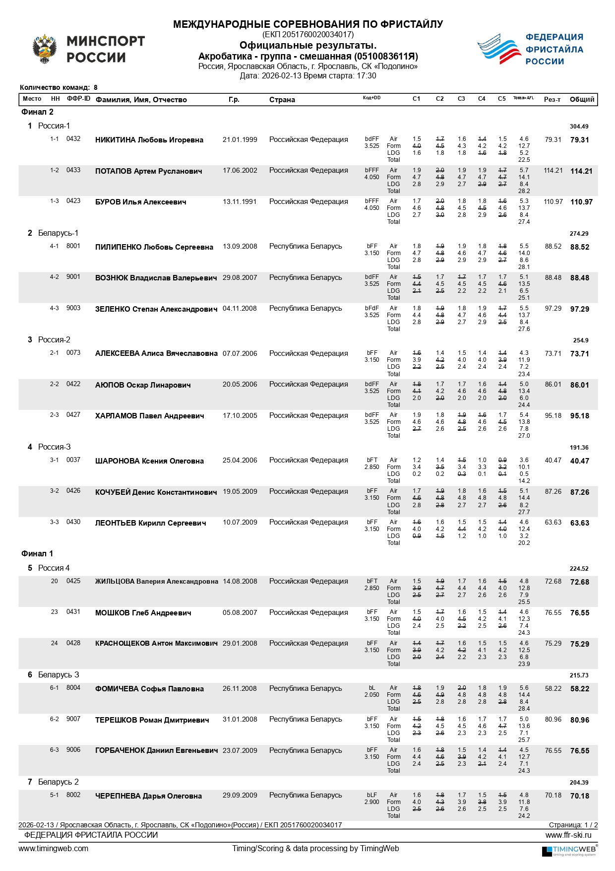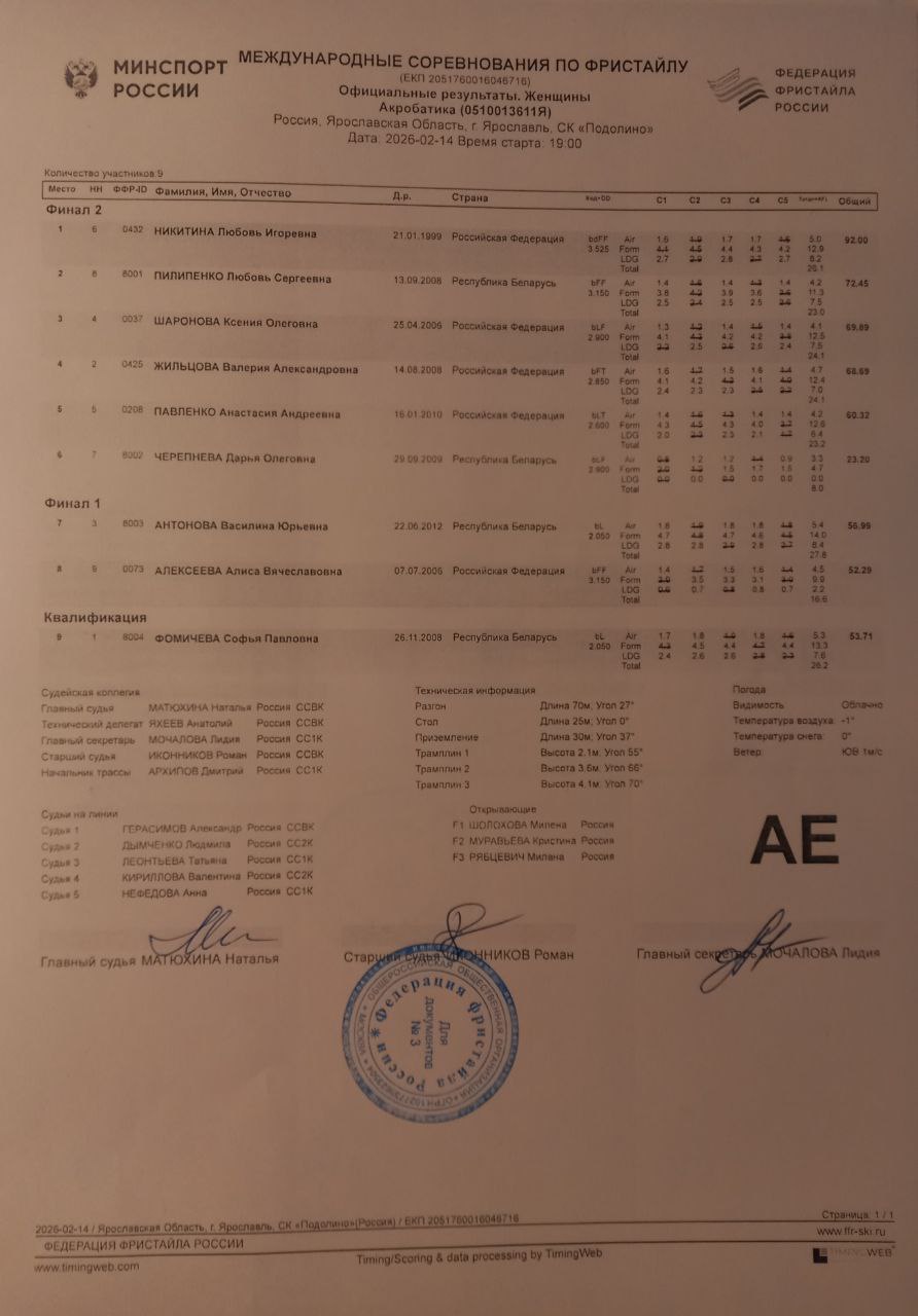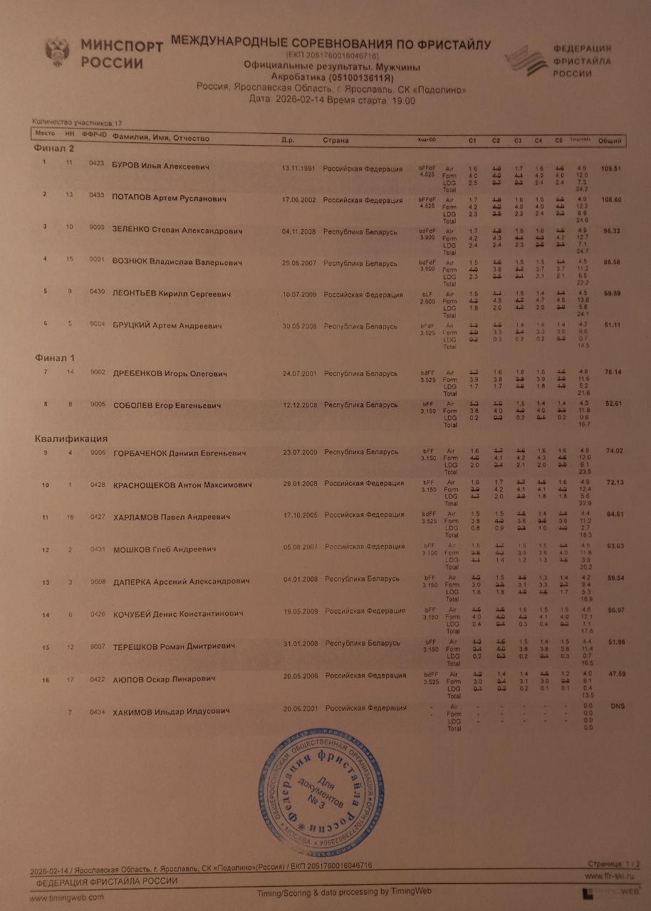 Протоколы Кубка чемпионов по акробатике в Подолино Ярославской области
