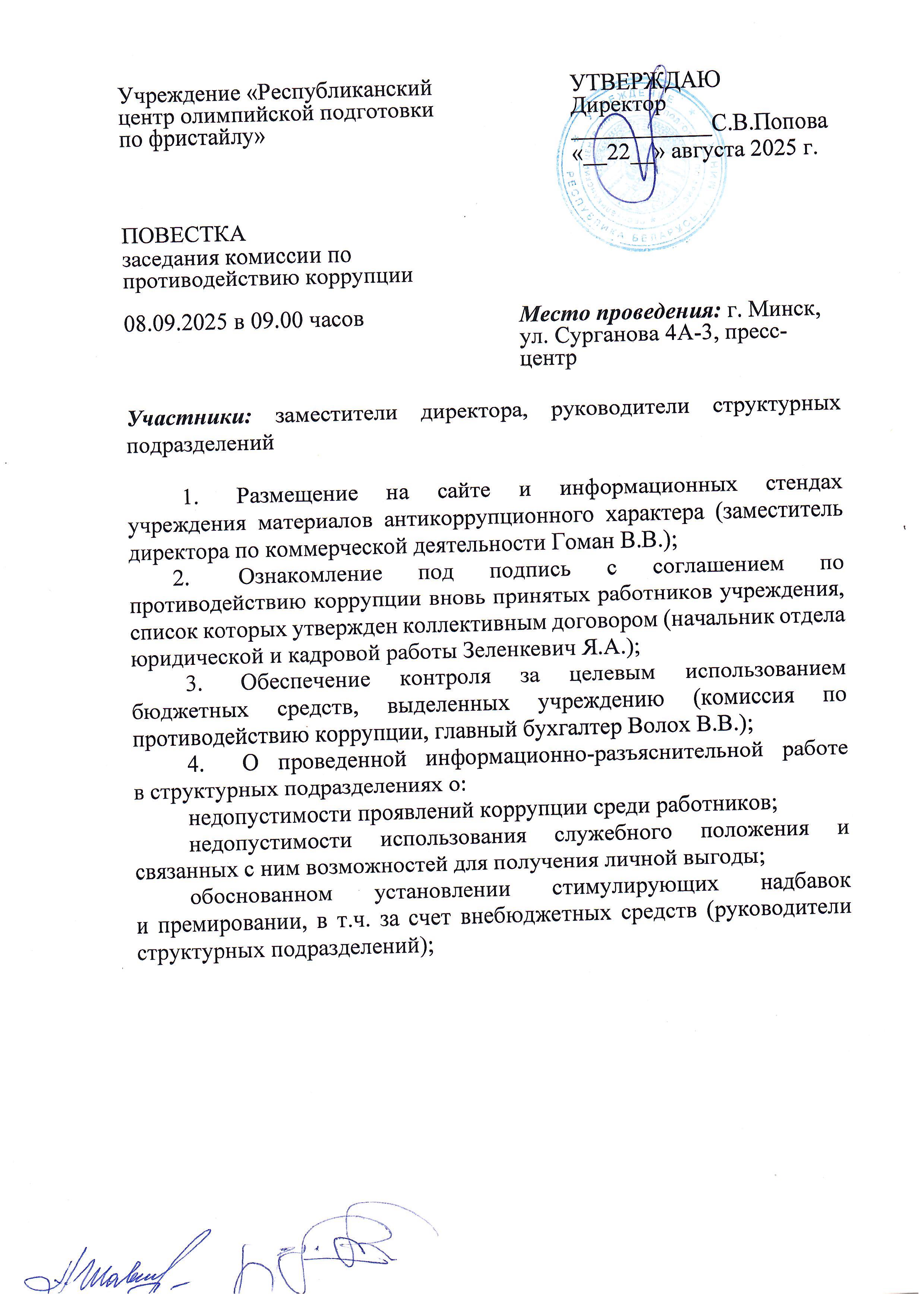 В «РЦОП по фристайлу» прошло заседание комиссии по противодействию коррупции. Обсудили главные причины коррупционных схем.